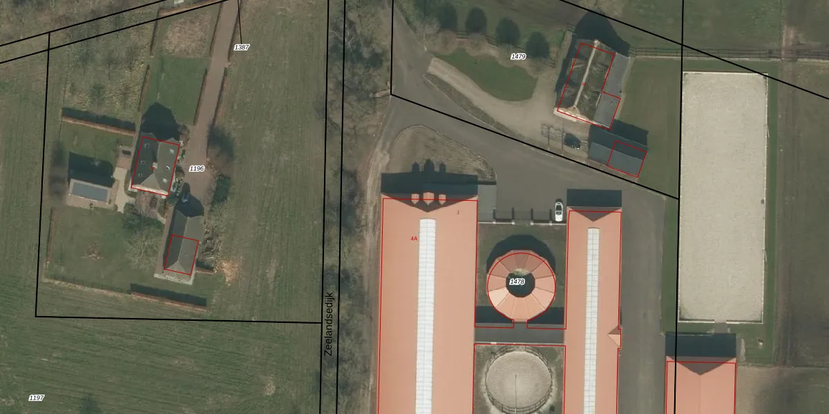 Het perceel waarop Zeelandsedijk 4-A staat heeft een oppervlakte van 7492 m². Dit is een zeer groot perceel. De perceeloppervlakte wordt geregistreerd door het Kadaster. Gedetailleerde informatie over de maten van dit perceel kunt u vinden in het rapport Kadastrale kaart met maatvoering van Zeelandsedijk 4-A.