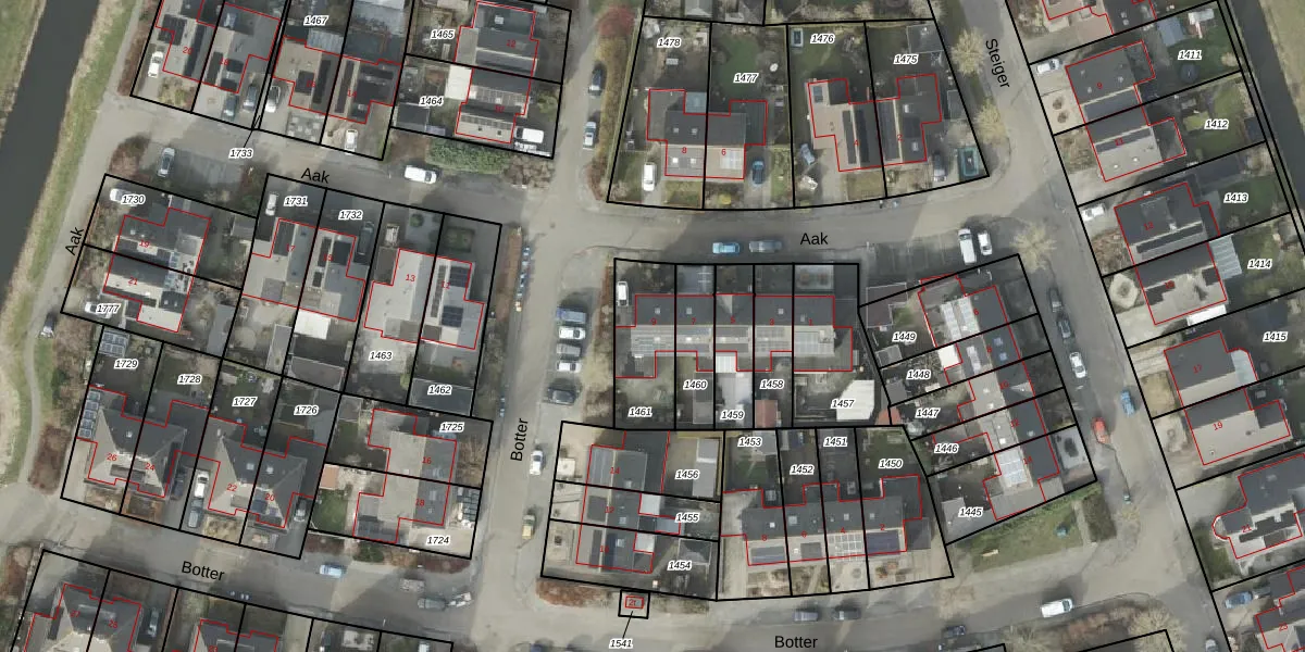Het perceel waarop Aak 9 staat heeft een oppervlakte van 241 m². Dit is een middelgroot perceel. De perceeloppervlakte wordt geregistreerd door het Kadaster. Gedetailleerde informatie over de maten van dit perceel kunt u vinden in het rapport Kadastrale kaart met maatvoering van Aak 9.