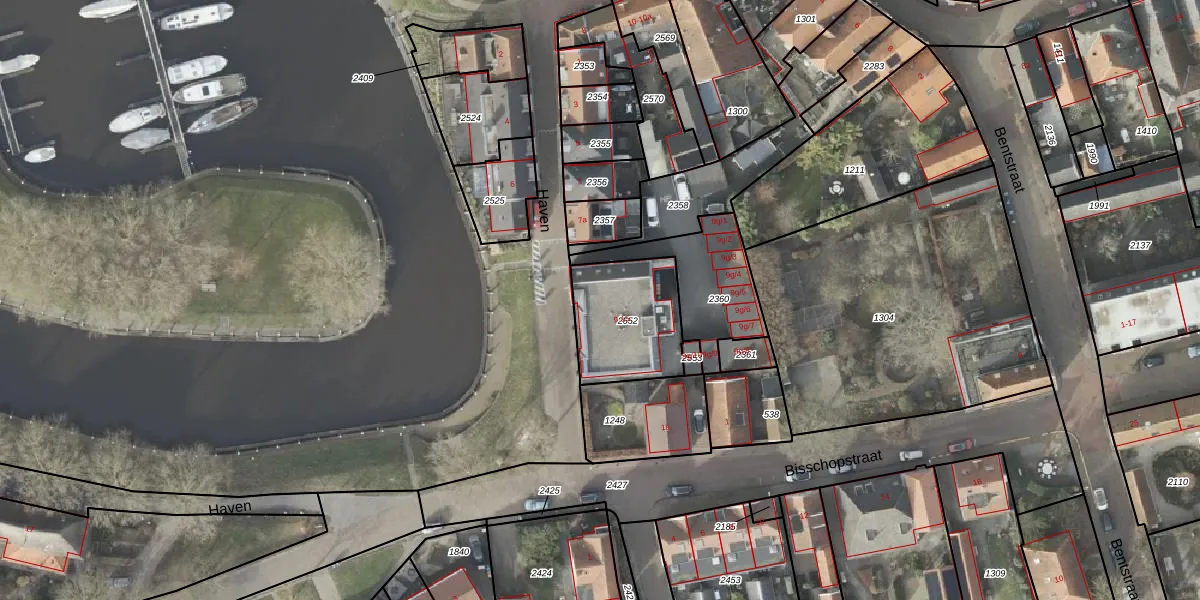 Het perceel waarop Haven 9-a staat heeft een oppervlakte van 351 m². Dit is een groot perceel. De perceeloppervlakte wordt geregistreerd door het Kadaster. Gedetailleerde informatie over de maten van dit perceel kunt u vinden in het rapport Kadastrale kaart met maatvoering van Haven 9-a.