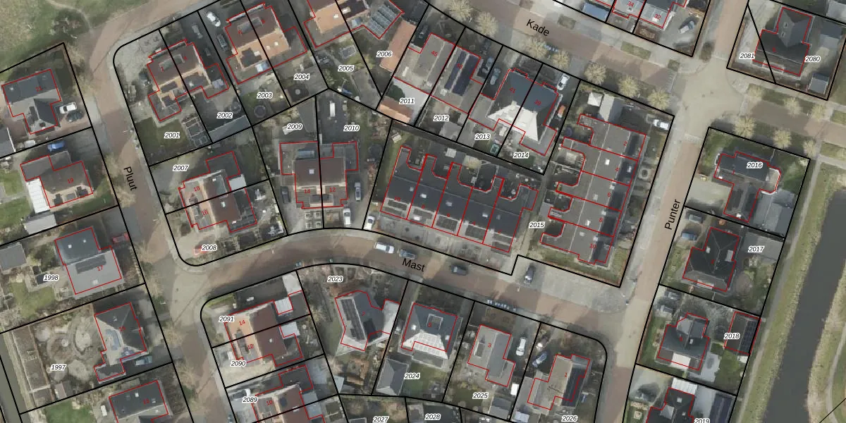 Het perceel waarop Mast 8 staat heeft een oppervlakte van 2043 m². Dit is een zeer groot perceel. De perceeloppervlakte wordt geregistreerd door het Kadaster. Gedetailleerde informatie over de maten van dit perceel kunt u vinden in het rapport Kadastrale kaart met maatvoering van Mast 8.