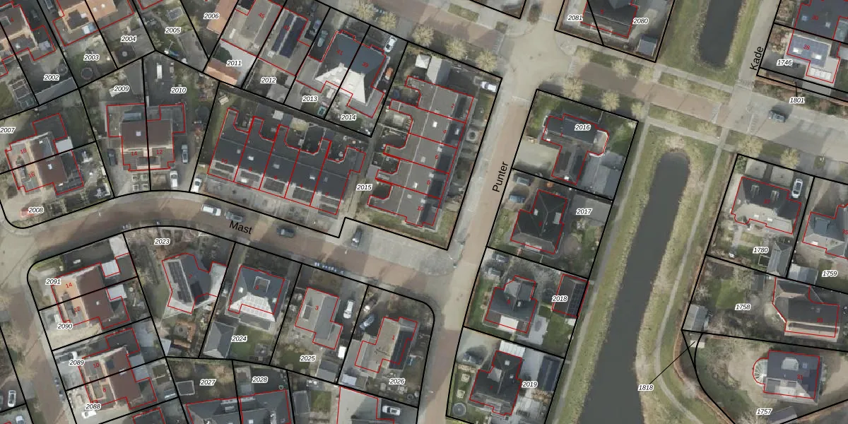 Het perceel waarop Punter 10 staat heeft een oppervlakte van 2043 m². Dit is een zeer groot perceel. De perceeloppervlakte wordt geregistreerd door het Kadaster. Gedetailleerde informatie over de maten van dit perceel kunt u vinden in het rapport Kadastrale kaart met maatvoering van Punter 10.