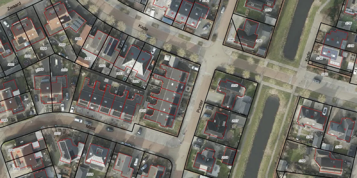 Het perceel waarop Punter 4 staat heeft een oppervlakte van 2043 m². Dit is een zeer groot perceel. De perceeloppervlakte wordt geregistreerd door het Kadaster. Gedetailleerde informatie over de maten van dit perceel kunt u vinden in het rapport Kadastrale kaart met maatvoering van Punter 4.