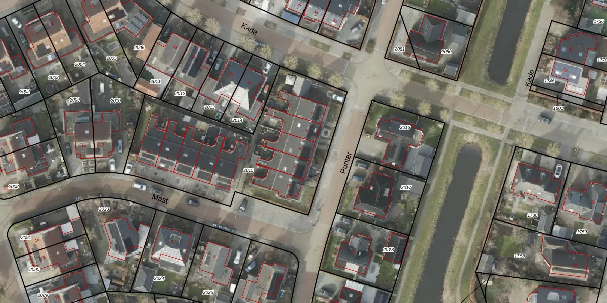 Het perceel waarop Punter 6 staat heeft een oppervlakte van 2043 m². Dit is een zeer groot perceel. De perceeloppervlakte wordt geregistreerd door het Kadaster. Gedetailleerde informatie over de maten van dit perceel kunt u vinden in het rapport Kadastrale kaart met maatvoering van Punter 6.
