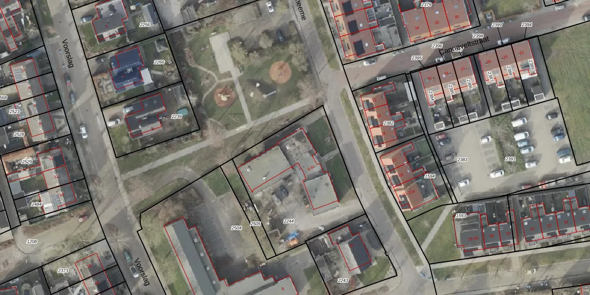 Het adres is gelegen op perceel 2244 in de sectie A en de kadastrale gemeente Vollenhove. De kadastrale aanduiding is aldus VLH00-A-2244. Het perceel is kleiner dan gemiddeld in Vollenhove. Het perceel is 1280 m² groot, terwijl het gemiddelde ligt op 7934,78 m². De grootste perceeloppervlakte in de kadastrale gemeente is 1,97 km². De kleinste oppervlakte bedraagt 0 m². Op het perceel zijn 4 adressen aanwezig. In de Basisregistratie Kadaster (BRK) werden de grenzen van het perceel geregistreerd op 05-03-2018.
