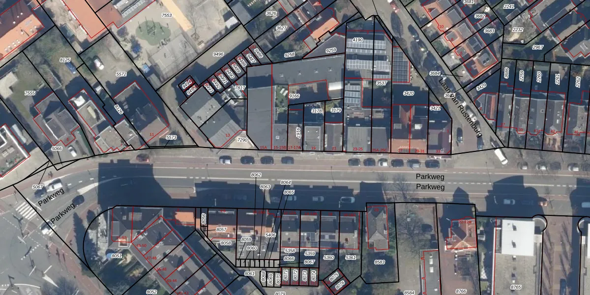 Het perceel waarop Parkweg 17-A staat heeft een oppervlakte van 82 m². Dit is een klein perceel. De perceeloppervlakte wordt geregistreerd door het Kadaster. Gedetailleerde informatie over de maten van dit perceel kunt u vinden in het rapport Kadastrale kaart met maatvoering van Parkweg 17-A.