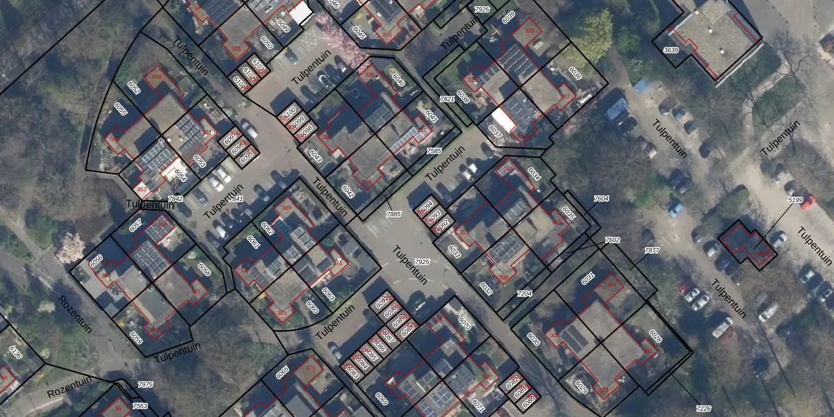 Tulpentuin 28-G is gelegen op kadastraal perceel VBG01D6094. Deze kadastrale aanduiding is uniek en wordt gebruikt door het Kadaster om eigendomsrechten en andere zakelijke rechten vast te leggen. Het perceel maakt onderdeel uit van de kadastrale gemeente Voorburg.