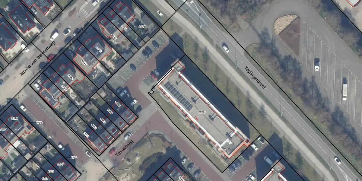 Het perceel waarop het adres ligt is VHT00-B-8208. De afkorting 'VHT00' staat voor kadastrale gemeente Voorhout. De oppervlakte van het perceel is 1835 m². Dat is groter dan gemiddeld in Voorhout, waar de gemiddelde perceeloppervlakte op 1645,43 m² ligt. Het grootste perceel in de kadastrale gemeente is 9,1 ha. Het kleinste perceel heeft een oppervlakte van 0 m². Op het perceel liggen in totaal 28 adressen. In de Basisregistratie Kadaster (BRK) werden de grenzen van het perceel geregistreerd op 06-07-2018.