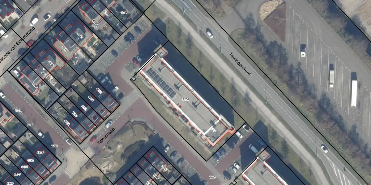 Het perceel waarop het adres ligt is VHT00-B-8208. De afkorting 'VHT00' staat voor kadastrale gemeente Voorhout. De oppervlakte van het perceel is 1835 m². Dat is groter dan gemiddeld in Voorhout, waar de gemiddelde perceeloppervlakte op 1645,43 m² ligt. Het grootste perceel in de kadastrale gemeente is 9,1 ha. Het kleinste perceel heeft een oppervlakte van 0 m². Er zijn 28 adressen aanwezig op het perceel. De huidige grenzen van het perceel zijn digitaal in de Basisregistratie Kadaster (BRK) geregistreerd op 06-07-2018.
