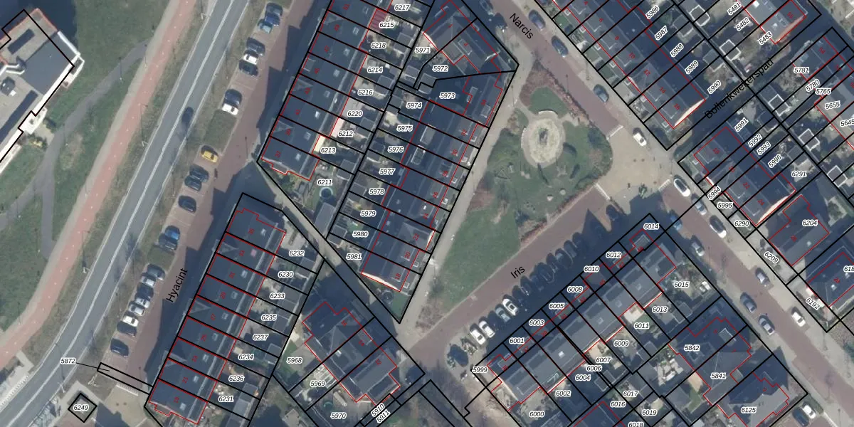 Het perceel waarop Iris 24 staat heeft een oppervlakte van 129 m². Dit is een middelgroot perceel. De perceeloppervlakte wordt geregistreerd door het Kadaster. Gedetailleerde informatie over de maten van dit perceel kunt u vinden in het rapport Kadastrale kaart met maatvoering van Iris 24.