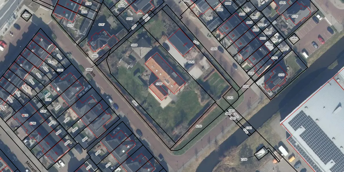 Het perceel waarop Iris 4 staat heeft een oppervlakte van 2055 m². Dit is een zeer groot perceel. De perceeloppervlakte wordt geregistreerd door het Kadaster. Gedetailleerde informatie over de maten van dit perceel kunt u vinden in het rapport Kadastrale kaart met maatvoering van Iris 4.