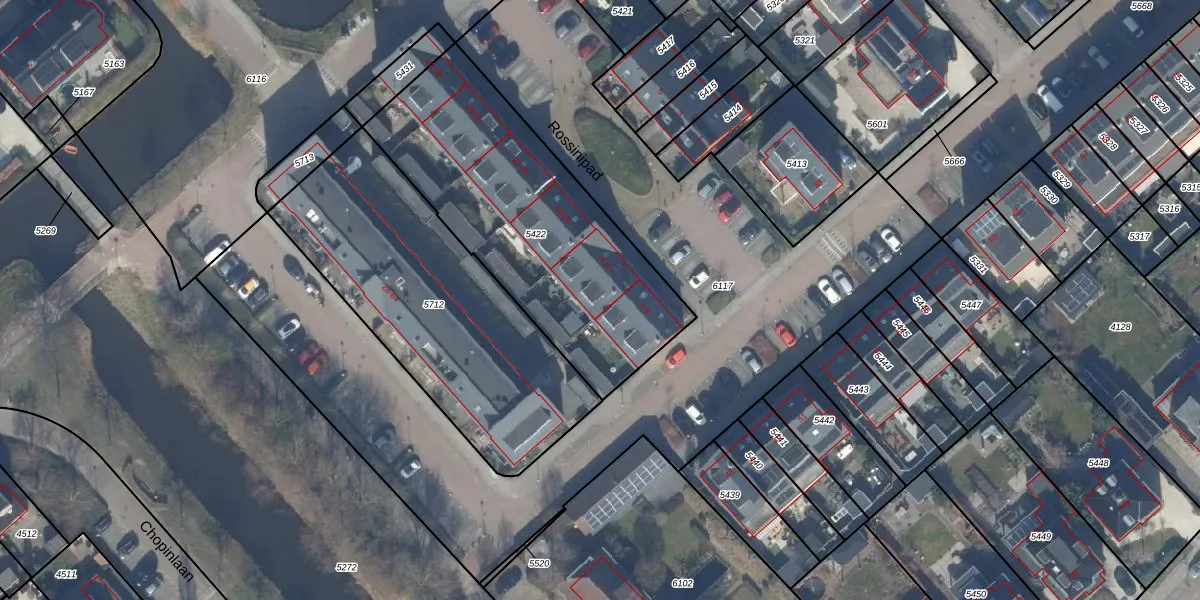 Het perceel waarop Rossinipad 10 staat heeft een oppervlakte van 1275 m². Dit is een zeer groot perceel. De perceeloppervlakte wordt geregistreerd door het Kadaster. Gedetailleerde informatie over de maten van dit perceel kunt u vinden in het rapport Kadastrale kaart met maatvoering van Rossinipad 10.