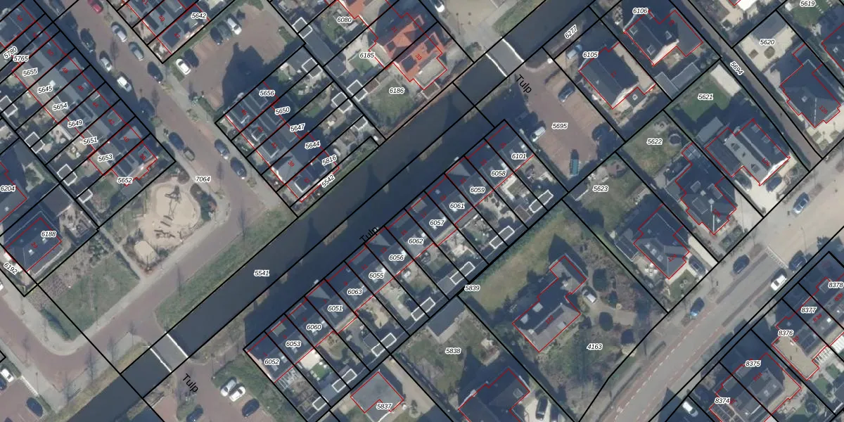 Het perceel waarop Tulp 17 staat heeft een oppervlakte van 148 m². Dit is een middelgroot perceel. De perceeloppervlakte wordt geregistreerd door het Kadaster. Gedetailleerde informatie over de maten van dit perceel kunt u vinden in het rapport Kadastrale kaart met maatvoering van Tulp 17.