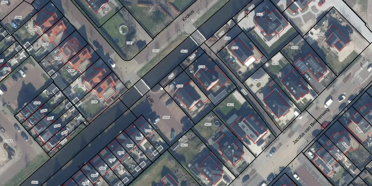 Gebruik de zoekbalk of klik op een perceel voor informatie over de adressen binnen dit perceel.
