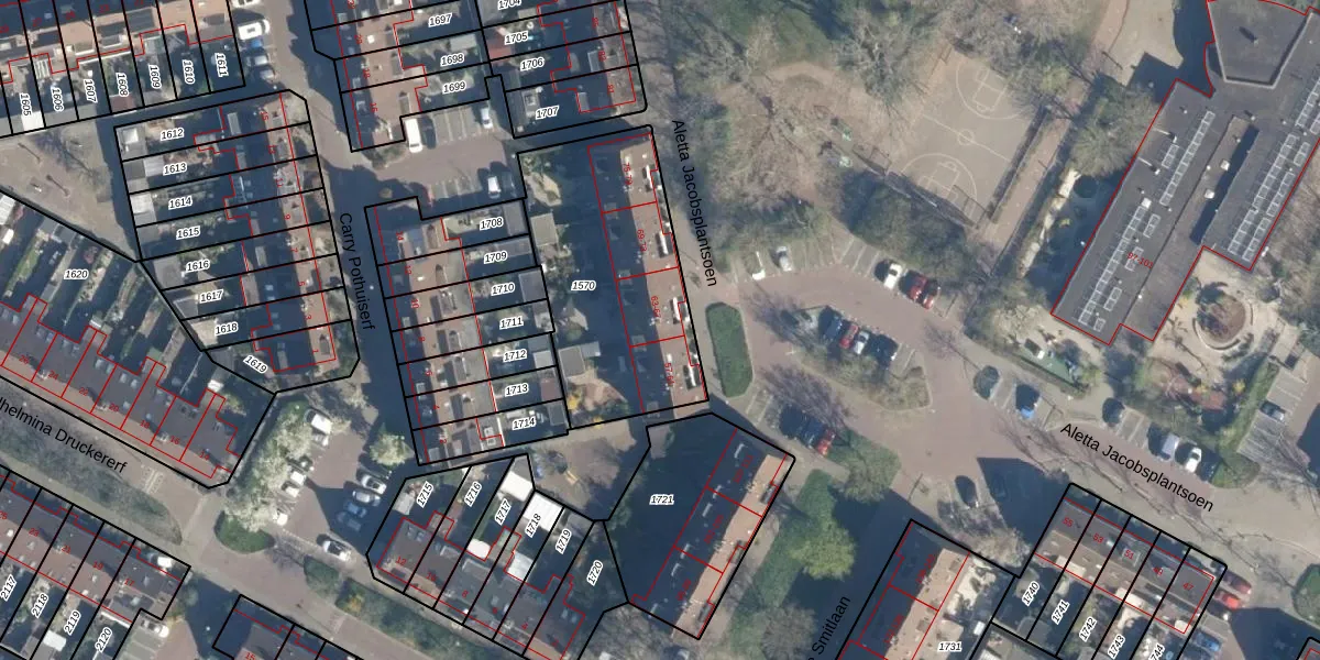 Het perceel waarop Aletta Jacobsplantsoen 63 staat heeft een oppervlakte van 896 m². Dit is een groot perceel. De perceeloppervlakte wordt geregistreerd door het Kadaster. Gedetailleerde informatie over de maten van dit perceel kunt u vinden in het rapport Kadastrale kaart met maatvoering van Aletta Jacobsplantsoen 63.