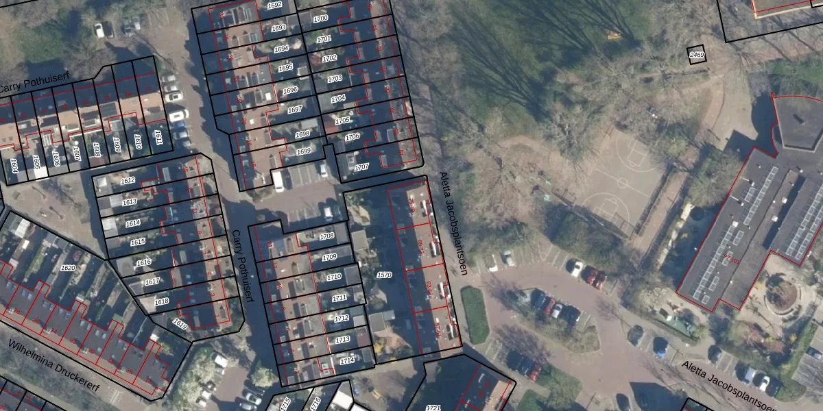Het perceel waarop Aletta Jacobsplantsoen 77 staat heeft een oppervlakte van 896 m². Dit is een groot perceel. De perceeloppervlakte wordt geregistreerd door het Kadaster. Gedetailleerde informatie over de maten van dit perceel kunt u vinden in het rapport Kadastrale kaart met maatvoering van Aletta Jacobsplantsoen 77.