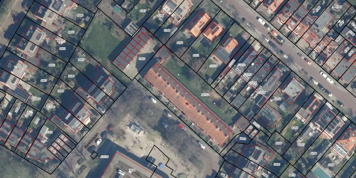 Het perceel waarop Beetslaan 38 staat heeft een oppervlakte van 1640 m². Dit is een zeer groot perceel. De perceeloppervlakte wordt geregistreerd door het Kadaster. Gedetailleerde informatie over de maten van dit perceel kunt u vinden in het rapport Kadastrale kaart met maatvoering van Beetslaan 38.