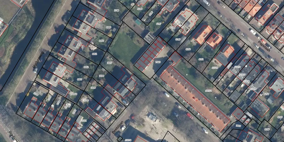 Het perceel waarop Beetslaan 42-k staat heeft een oppervlakte van 419 m². Dit is een groot perceel. De perceeloppervlakte wordt geregistreerd door het Kadaster. Gedetailleerde informatie over de maten van dit perceel kunt u vinden in het rapport Kadastrale kaart met maatvoering van Beetslaan 42-k.