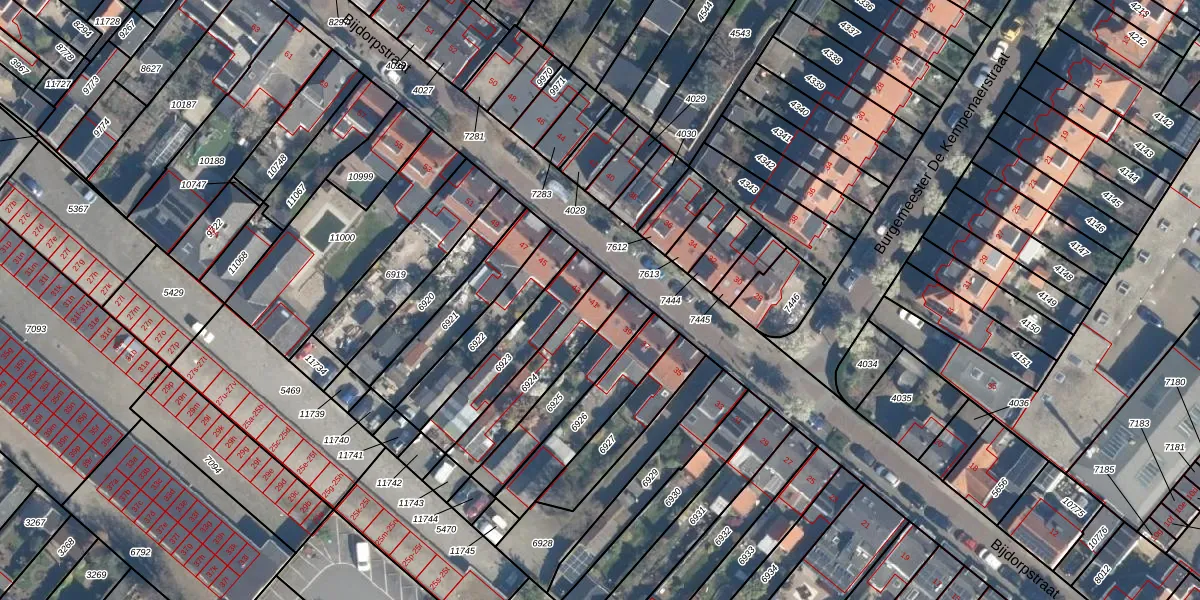 Gebruik de zoekbalk of klik op een perceel voor informatie over de adressen binnen dit perceel.