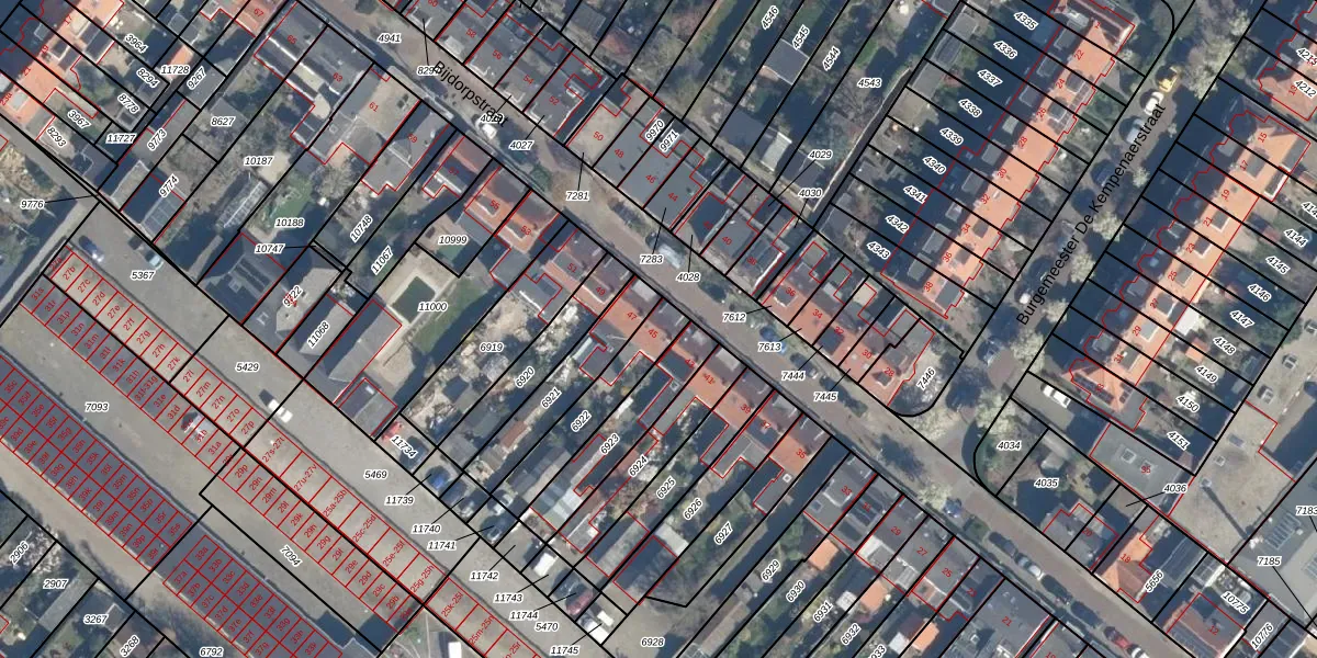 Het perceel waarop Bijdorpstraat 45 staat heeft een oppervlakte van 224 m². Dit is een middelgroot perceel. De perceeloppervlakte wordt geregistreerd door het Kadaster. Gedetailleerde informatie over de maten van dit perceel kunt u vinden in het rapport Kadastrale kaart met maatvoering van Bijdorpstraat 45.