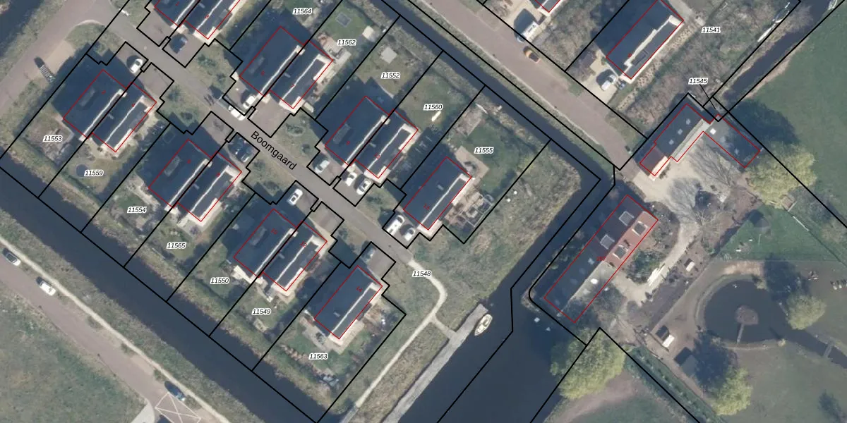 Het perceel waarop Boomgaard 13 staat heeft een oppervlakte van 727 m². Dit is een groot perceel. De perceeloppervlakte wordt geregistreerd door het Kadaster. Gedetailleerde informatie over de maten van dit perceel kunt u vinden in het rapport Kadastrale kaart met maatvoering van Boomgaard 13.