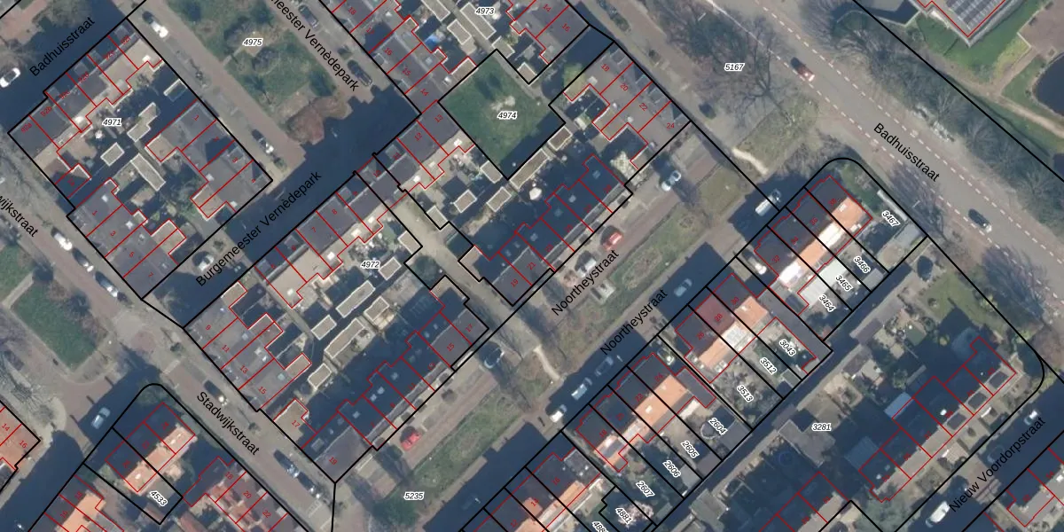 Noortheystraat 21 is gelegen op kadastraal perceel VST00A4973. Deze kadastrale aanduiding is uniek en wordt gebruikt door het Kadaster om eigendomsrechten en andere zakelijke rechten vast te leggen. Het perceel maakt onderdeel uit van de kadastrale gemeente Voorschoten.
