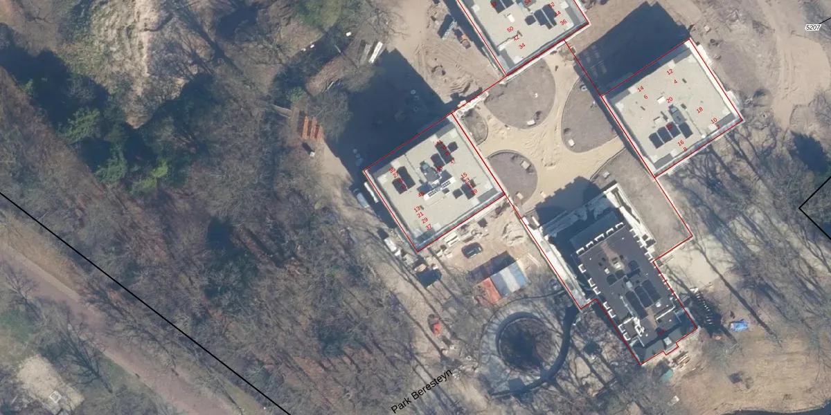 Het perceel waarop Park Beresteyn 13 staat heeft een oppervlakte van 5,6 ha. Dit is een zeer groot perceel. De perceeloppervlakte wordt geregistreerd door het Kadaster. Gedetailleerde informatie over de maten van dit perceel kunt u vinden in het rapport Kadastrale kaart met maatvoering van Park Beresteyn 13.