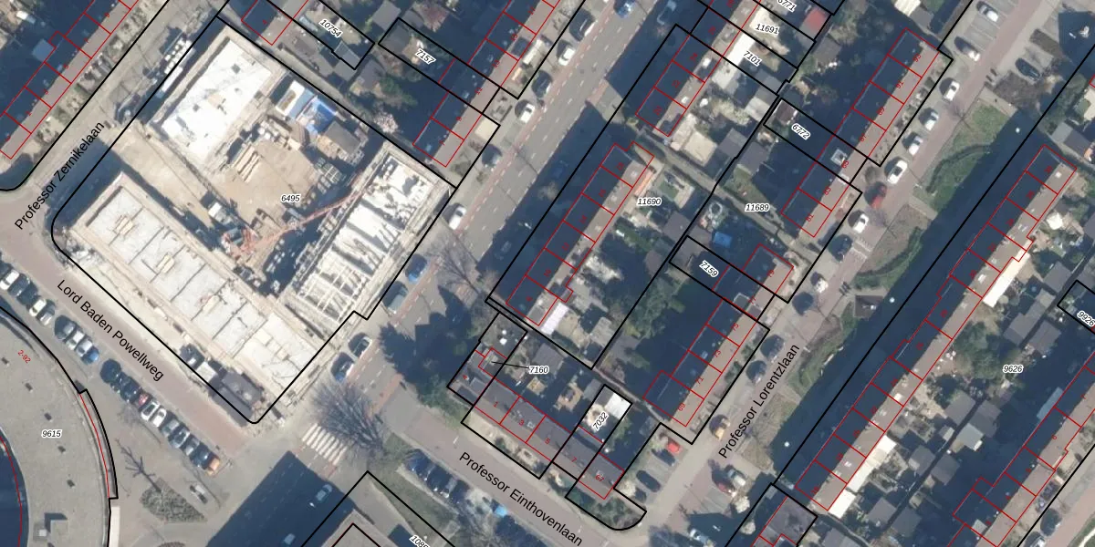 Professor Einsteinlaan 10 is gelegen op kadastraal perceel VST00B11690. Deze kadastrale aanduiding is uniek en wordt gebruikt door het Kadaster om eigendomsrechten en andere zakelijke rechten vast te leggen. Het perceel maakt onderdeel uit van de kadastrale gemeente Voorschoten.