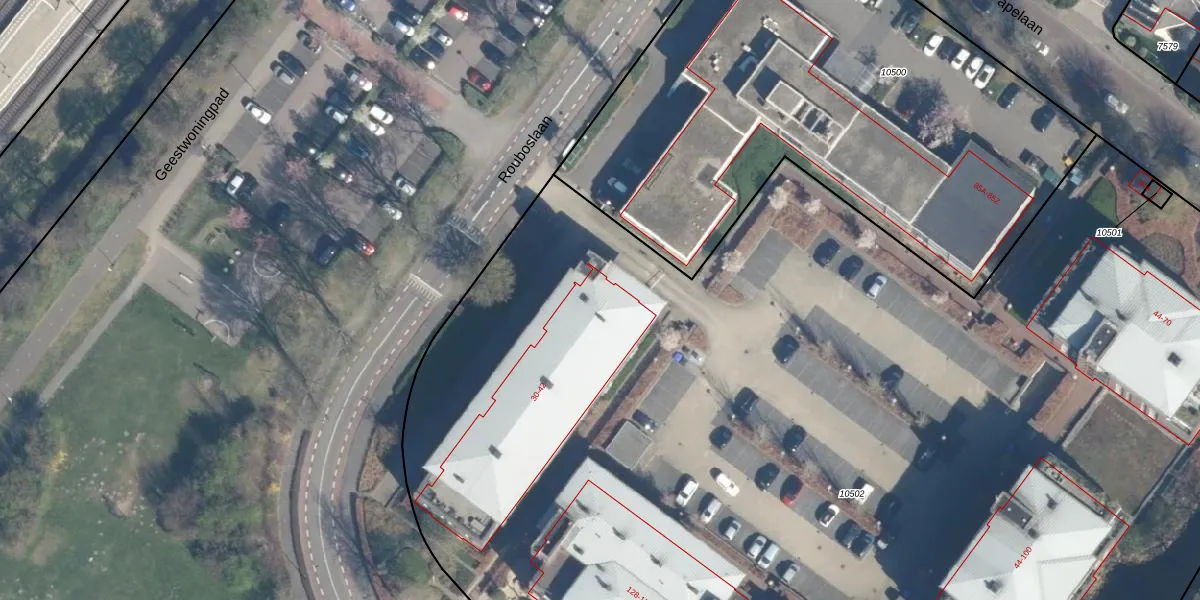 Rouboslaan 38-d is gelegen op kadastraal perceel VST00B10502. Deze kadastrale aanduiding is uniek en wordt gebruikt door het Kadaster om eigendomsrechten en andere zakelijke rechten vast te leggen. Het perceel maakt onderdeel uit van de kadastrale gemeente Voorschoten.