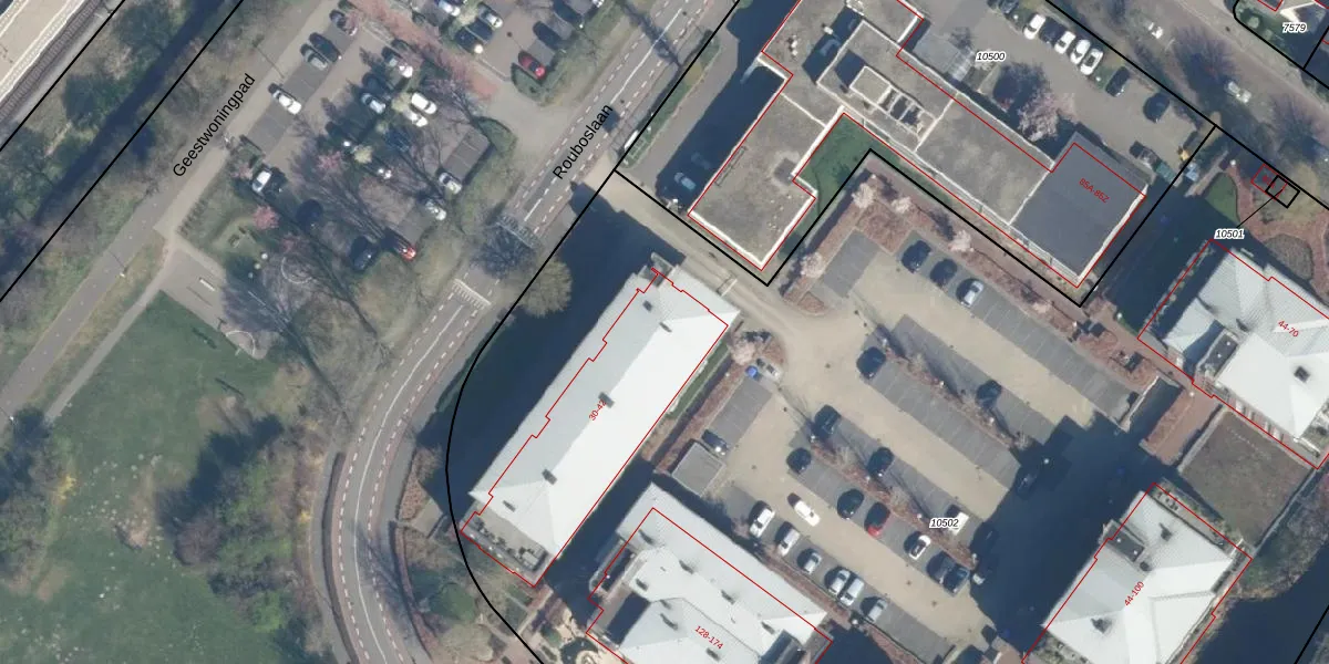 Rouboslaan 40-e is gelegen op kadastraal perceel VST00B10502. Deze kadastrale aanduiding is uniek en wordt gebruikt door het Kadaster om eigendomsrechten en andere zakelijke rechten vast te leggen. Het perceel maakt onderdeel uit van de kadastrale gemeente Voorschoten.