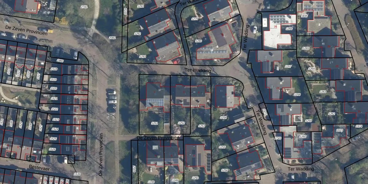 Gebruik de zoekbalk of klik op een perceel voor informatie over de adressen binnen dit perceel.