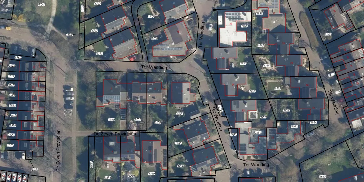 Ter Wadding 4 is gelegen op kadastraal perceel VST00C1254. Deze kadastrale aanduiding is uniek en wordt gebruikt door het Kadaster om eigendomsrechten en andere zakelijke rechten vast te leggen. Het perceel maakt onderdeel uit van de kadastrale gemeente Voorschoten.