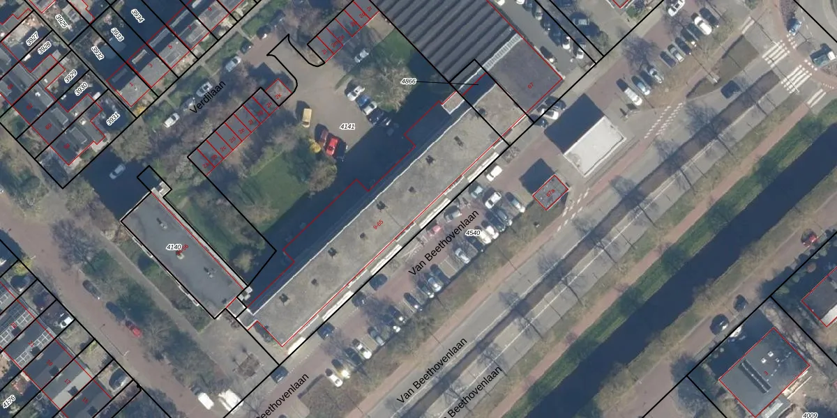 Het perceel waarop Van Beethovenlaan 23 staat heeft een oppervlakte van 3242 m². Dit is een zeer groot perceel. De perceeloppervlakte wordt geregistreerd door het Kadaster. Gedetailleerde informatie over de maten van dit perceel kunt u vinden in het rapport Kadastrale kaart met maatvoering van Van Beethovenlaan 23.