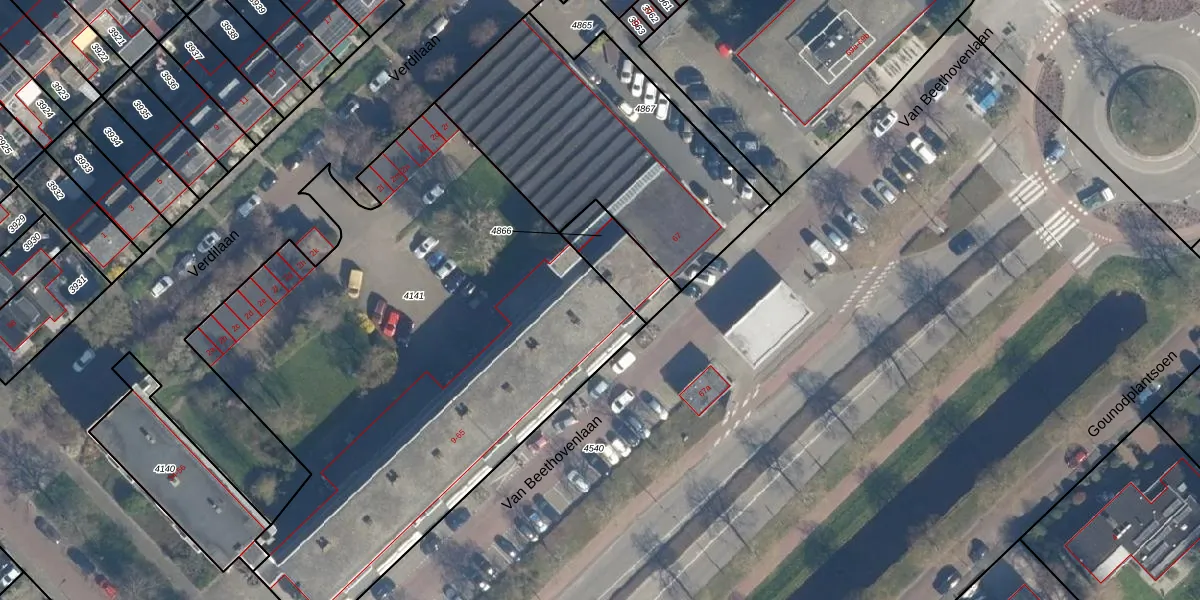 Het perceel waarop Van Beethovenlaan 43 staat heeft een oppervlakte van 3242 m². Dit is een zeer groot perceel. De perceeloppervlakte wordt geregistreerd door het Kadaster. Gedetailleerde informatie over de maten van dit perceel kunt u vinden in het rapport Kadastrale kaart met maatvoering van Van Beethovenlaan 43.