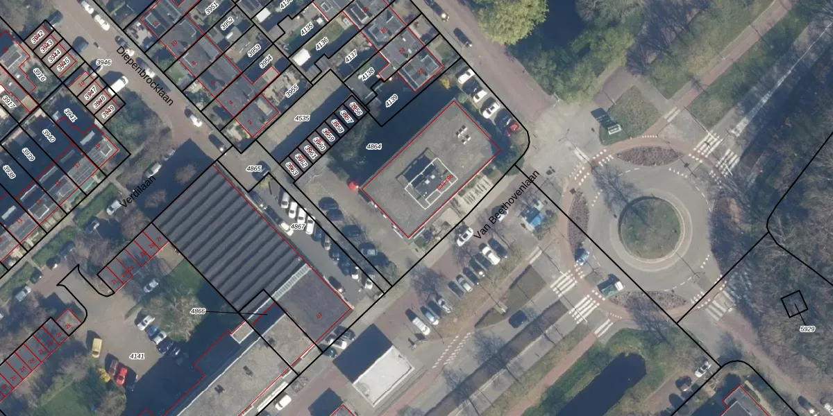 Het perceel waarop Van Beethovenlaan 69-a staat heeft een oppervlakte van 1545 m². Dit is een zeer groot perceel. De perceeloppervlakte wordt geregistreerd door het Kadaster. Gedetailleerde informatie over de maten van dit perceel kunt u vinden in het rapport Kadastrale kaart met maatvoering van Van Beethovenlaan 69-a.