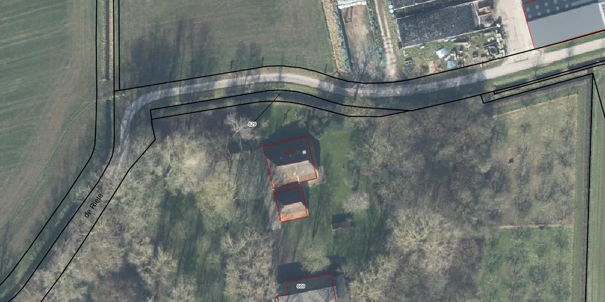 Het perceel waarop de Riete 75 staat heeft een oppervlakte van 2,0 ha. Dit is een zeer groot perceel. De perceeloppervlakte wordt geregistreerd door het Kadaster. Gedetailleerde informatie over de maten van dit perceel kunt u vinden in het rapport Kadastrale kaart met maatvoering van de Riete 75.