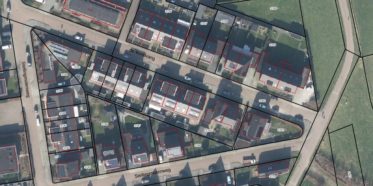 de Windvang 18 is gelegen op kadastraal perceel VOO00E3755. Deze kadastrale aanduiding is uniek en wordt gebruikt door het Kadaster om eigendomsrechten en andere zakelijke rechten vast te leggen. Het perceel maakt onderdeel uit van de kadastrale gemeente Voorst.
