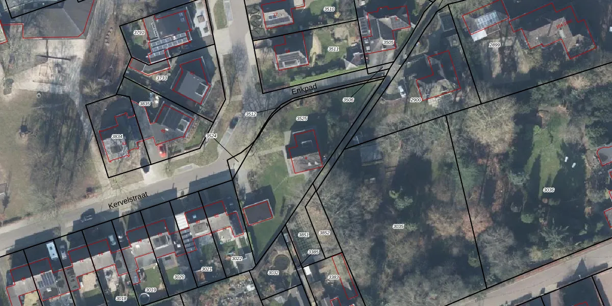 Het perceel waarop Enkpad 4 staat heeft een oppervlakte van 1182 m². Dit is een zeer groot perceel. De perceeloppervlakte wordt geregistreerd door het Kadaster. Gedetailleerde informatie over de maten van dit perceel kunt u vinden in het rapport Kadastrale kaart met maatvoering van Enkpad 4.