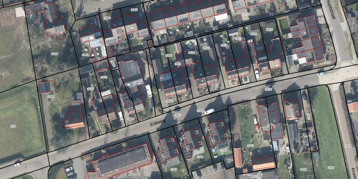 Het perceel waarop Enkweg 24 staat heeft een oppervlakte van 293 m². Dit is een middelgroot perceel. De perceeloppervlakte wordt geregistreerd door het Kadaster. Gedetailleerde informatie over de maten van dit perceel kunt u vinden in het rapport Kadastrale kaart met maatvoering van Enkweg 24.