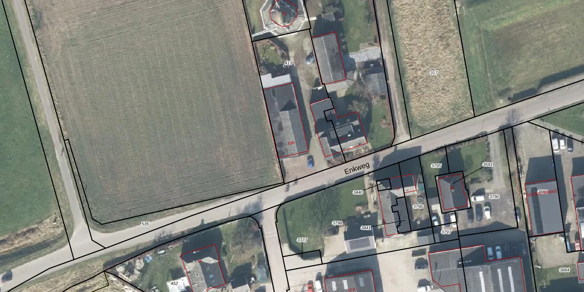 Enkweg 42-B is gelegen op kadastraal perceel VOO00K413. Deze kadastrale aanduiding is uniek en wordt gebruikt door het Kadaster om eigendomsrechten en andere zakelijke rechten vast te leggen. Het perceel maakt onderdeel uit van de kadastrale gemeente Voorst.