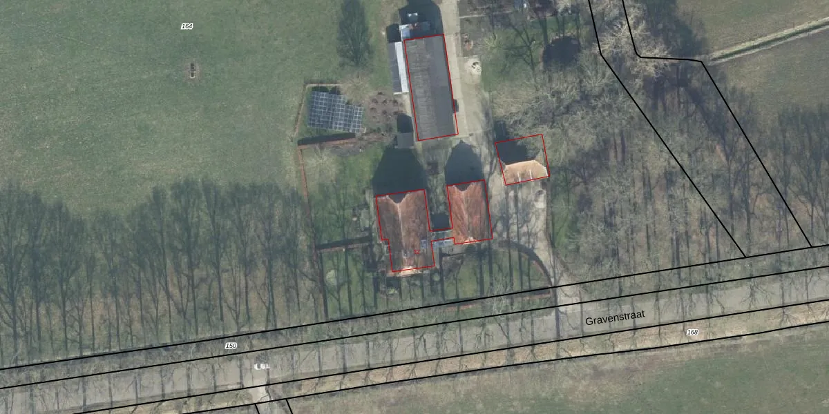 Het perceel waarop Gravenstraat 32-A staat heeft een oppervlakte van 2,6 ha. Dit is een zeer groot perceel. De perceeloppervlakte wordt geregistreerd door het Kadaster. Gedetailleerde informatie over de maten van dit perceel kunt u vinden in het rapport Kadastrale kaart met maatvoering van Gravenstraat 32-A.