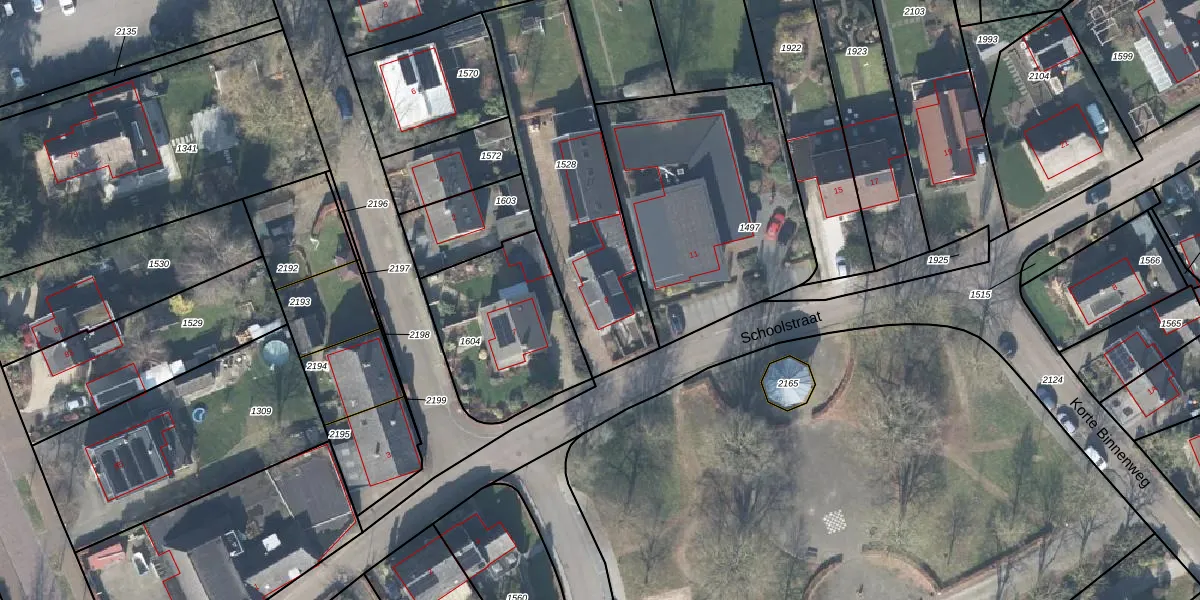 Het perceel waarop Schoolstraat 9 staat heeft een oppervlakte van 835 m². Dit is een groot perceel. De perceeloppervlakte wordt geregistreerd door het Kadaster. Gedetailleerde informatie over de maten van dit perceel kunt u vinden in het rapport Kadastrale kaart met maatvoering van Schoolstraat 9.
