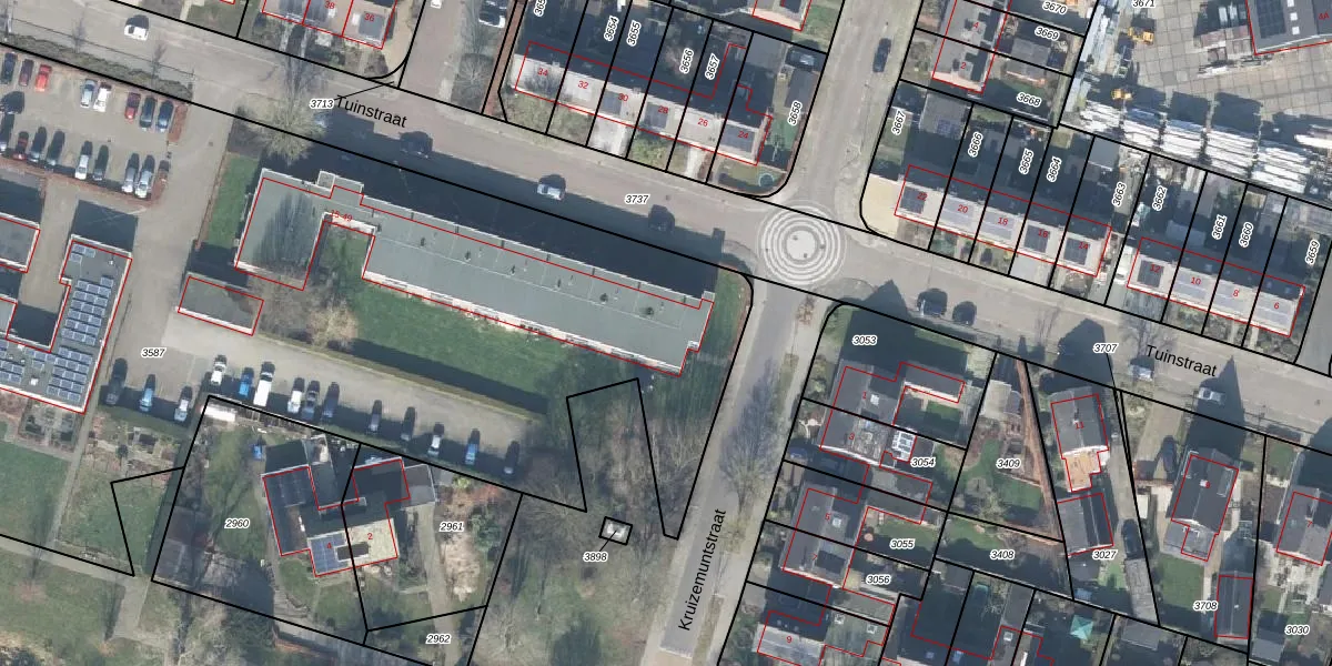 Tuinstraat 15 is gelegen op kadastraal perceel VOO00E3587. Deze kadastrale aanduiding is uniek en wordt gebruikt door het Kadaster om eigendomsrechten en andere zakelijke rechten vast te leggen. Het perceel maakt onderdeel uit van de kadastrale gemeente Voorst.