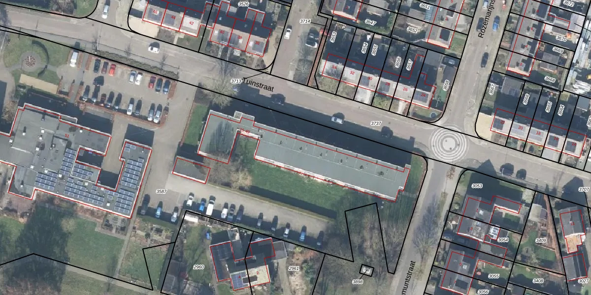 Het perceel waarop Tuinstraat 25 staat heeft een oppervlakte van 1,3 ha. Dit is een zeer groot perceel. De perceeloppervlakte wordt geregistreerd door het Kadaster. Gedetailleerde informatie over de maten van dit perceel kunt u vinden in het rapport Kadastrale kaart met maatvoering van Tuinstraat 25.