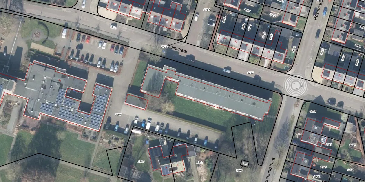Het perceel waarop Tuinstraat 37 staat heeft een oppervlakte van 1,3 ha. Dit is een zeer groot perceel. De perceeloppervlakte wordt geregistreerd door het Kadaster. Gedetailleerde informatie over de maten van dit perceel kunt u vinden in het rapport Kadastrale kaart met maatvoering van Tuinstraat 37.