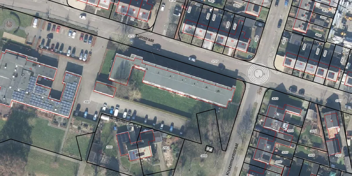 Het perceel waarop Tuinstraat 41 staat heeft een oppervlakte van 1,3 ha. Dit is een zeer groot perceel. De perceeloppervlakte wordt geregistreerd door het Kadaster. Gedetailleerde informatie over de maten van dit perceel kunt u vinden in het rapport Kadastrale kaart met maatvoering van Tuinstraat 41.