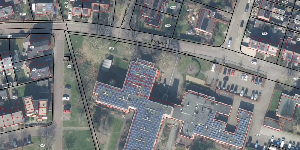 Het perceel waarop Tuinstraat 51-K-108 staat heeft een oppervlakte van 1,3 ha. Dit is een zeer groot perceel. De perceeloppervlakte wordt geregistreerd door het Kadaster. Gedetailleerde informatie over de maten van dit perceel kunt u vinden in het rapport Kadastrale kaart met maatvoering van Tuinstraat 51-K-108.