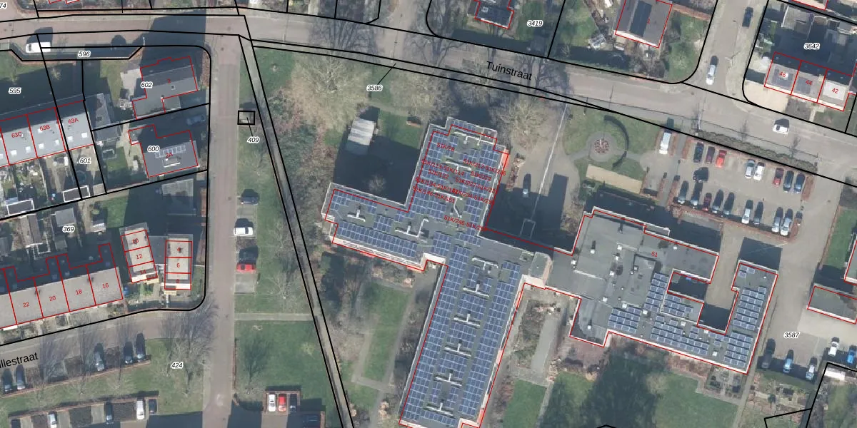 Tuinstraat 51-K-16 is gelegen op kadastraal perceel VOO00E3587. Deze kadastrale aanduiding is uniek en wordt gebruikt door het Kadaster om eigendomsrechten en andere zakelijke rechten vast te leggen. Het perceel maakt onderdeel uit van de kadastrale gemeente Voorst.
