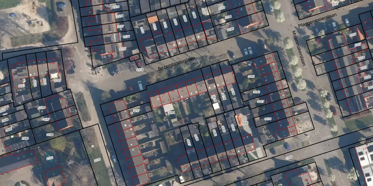 Het perceel waarop Bezembinderslaan 11 staat heeft een oppervlakte van 2385 m². Dit is een zeer groot perceel. De perceeloppervlakte wordt geregistreerd door het Kadaster. Gedetailleerde informatie over de maten van dit perceel kunt u vinden in het rapport Kadastrale kaart met maatvoering van Bezembinderslaan 11.