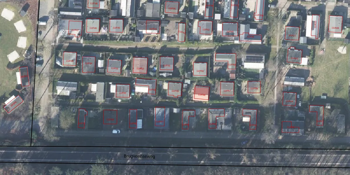 Brugveenseweg 11-F59 is gelegen op kadastraal perceel VHZ02F3230. Deze kadastrale aanduiding is uniek en wordt gebruikt door het Kadaster om eigendomsrechten en andere zakelijke rechten vast te leggen. Het perceel maakt onderdeel uit van de kadastrale gemeente Voorthuizen.