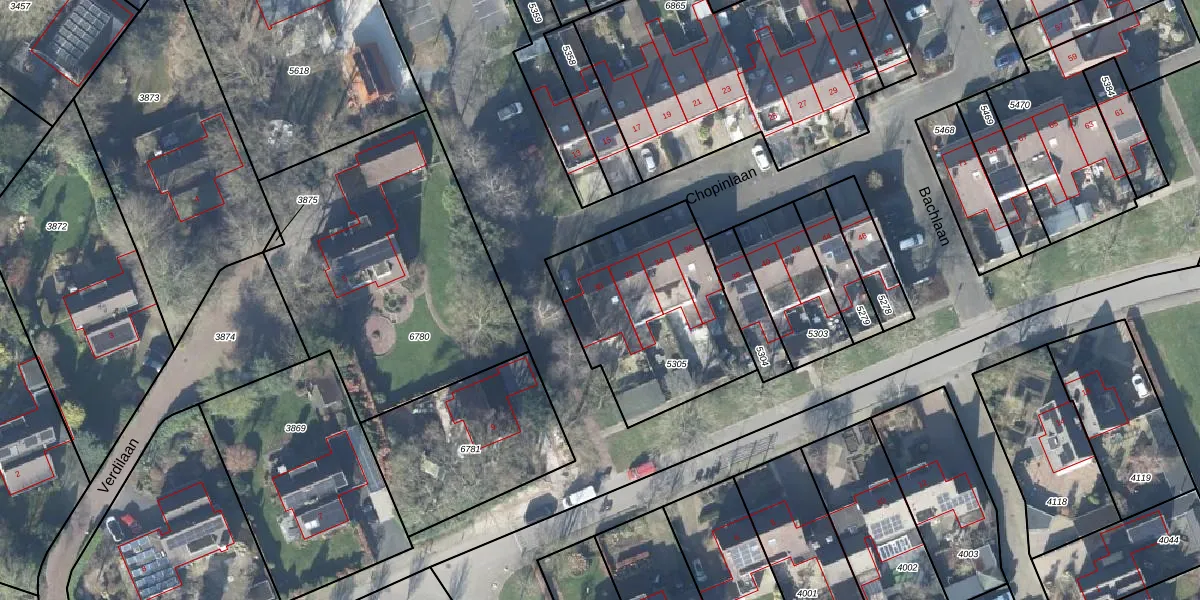 Het perceel waarop Chopinlaan 30 staat heeft een oppervlakte van 765 m². Dit is een groot perceel. De perceeloppervlakte wordt geregistreerd door het Kadaster. Gedetailleerde informatie over de maten van dit perceel kunt u vinden in het rapport Kadastrale kaart met maatvoering van Chopinlaan 30.